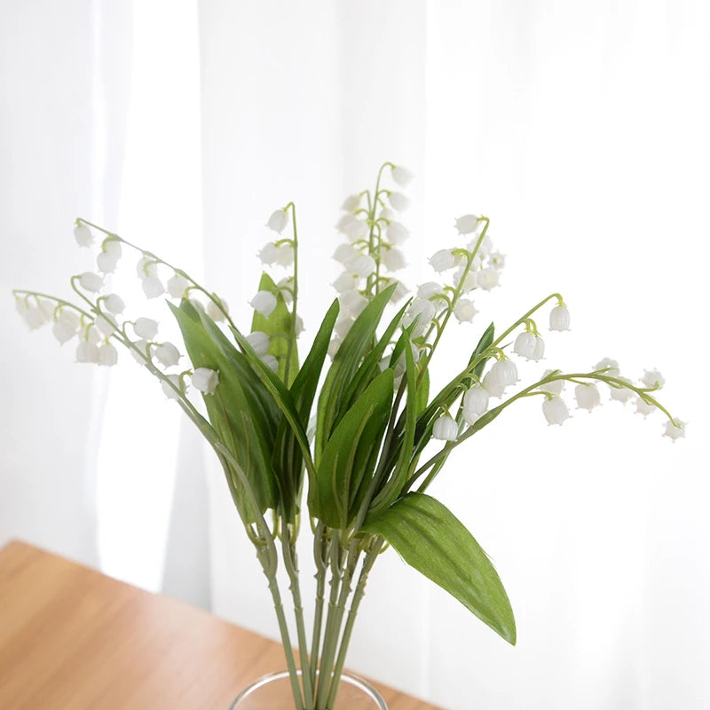 6Pcs White Bellflower Artificial Lily Valley Orchid Flower