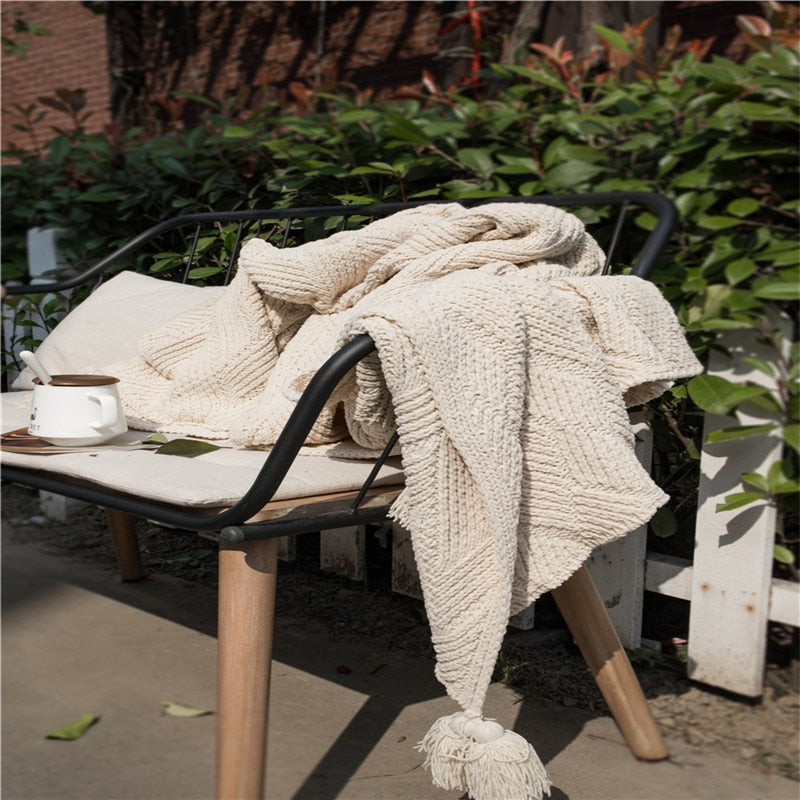 Sit out by the windowstill with your favorite cup of joe and cuddle up with this soft and comfy striped tassel blanket.